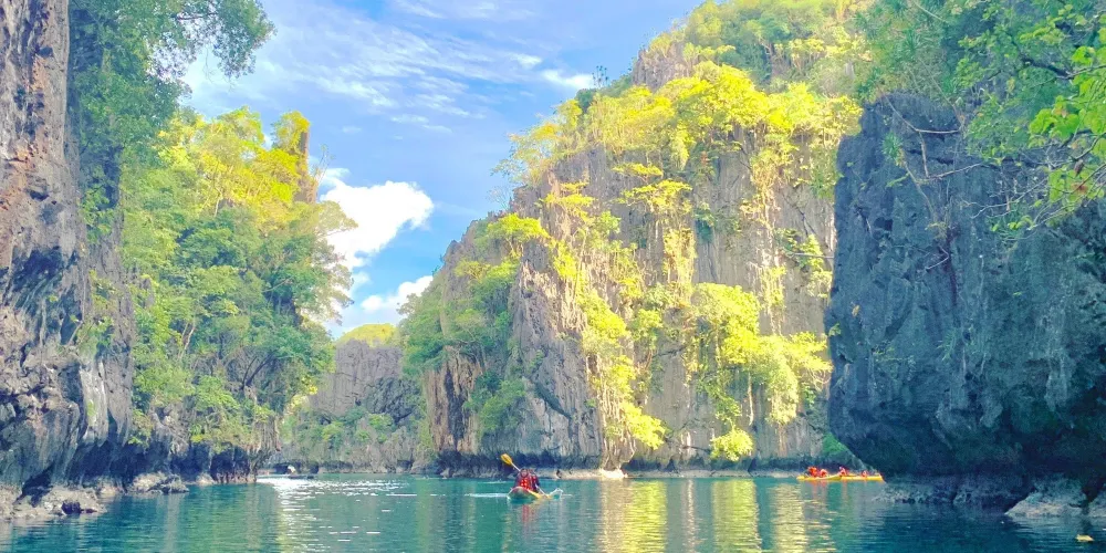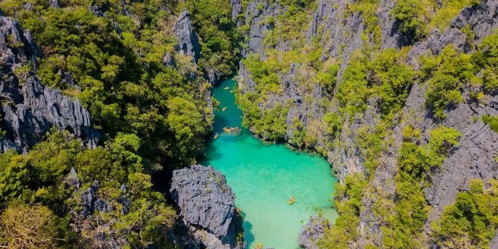位於Miniloc島上,離小瀉湖不遠,是愛妮島的特色。兩岸的風光很像海上的桂林山水,非常漂亮,可以只在船上遊覽兩岸的美景,也可以劃獨木舟,下海遊泳和浮潛。