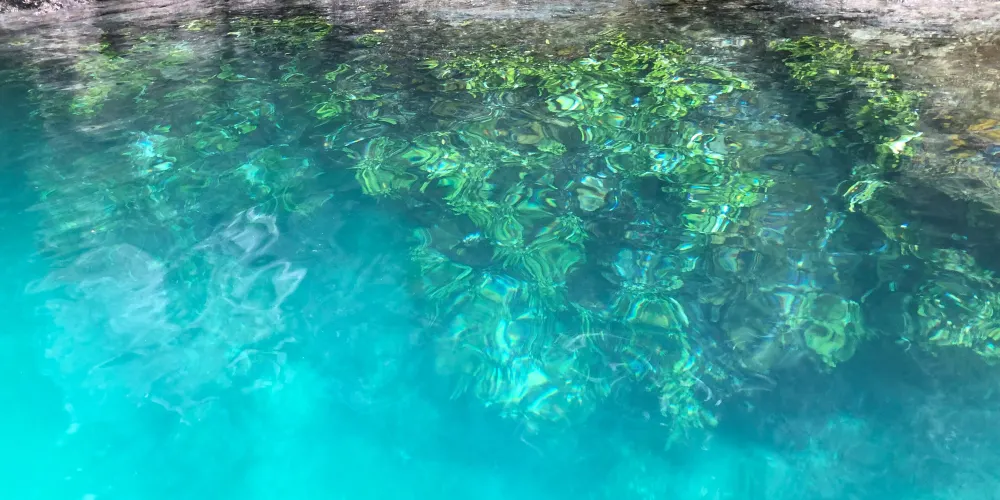 隱藏在礁石後,需要鑽洞進入,裡面別有洞天,有個小小的lagoon(瀉湖),這裡的水跟外面的海水相通,很清澈,還有很多魚,漲潮時可以在此浮潛一番。善談環繞在山石中間,另一端與外海相連,很是神奇。