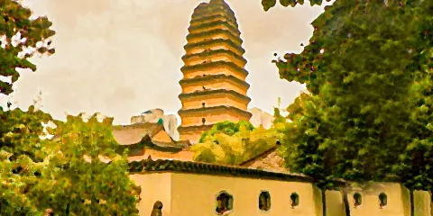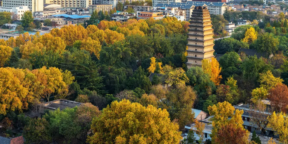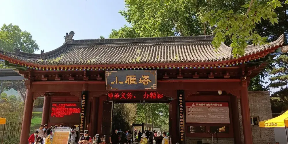 它因為塔形似大雁塔並且小於大雁塔而得名。與大雁塔的喧囂相比,這裡安靜了許多。塔下露天擺放著不少歷代精美的石佛、石獅、石馬、拴馬樁等石雕,喜歡民俗文物的遊客不能錯過。塔為密檐式磚塔,原高十五層,現存十三層,高約43.4米。其造型秀麗挺拔,輪廓線條流暢,是唐代密檐方塔的典型代表,也是西安作為古都的重要象徵之一,享有「關中八景」之一「雁塔晨鐘」的美譽。