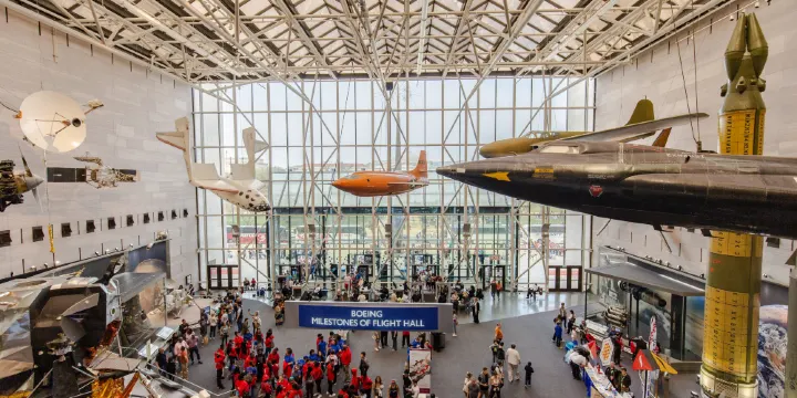 美國國家航空航天博物館坐落於國家廣場南側,隸屬史密森尼學會,展館佔據了整整三個街區,展廳匯集了大量具有里程碑意義的飛行器、太空探測器、導彈等,同時也是研究航空航天、行星科學、地球科學的歷史和科學研究。