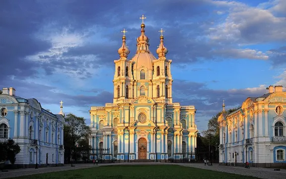 斯莫爾尼宮是一座外觀典雅的三層巴洛克式建築,極其豪華。其部分房屋曾是寄宿學校,但由於修道院的樓舍不適合作教室用而遷出。