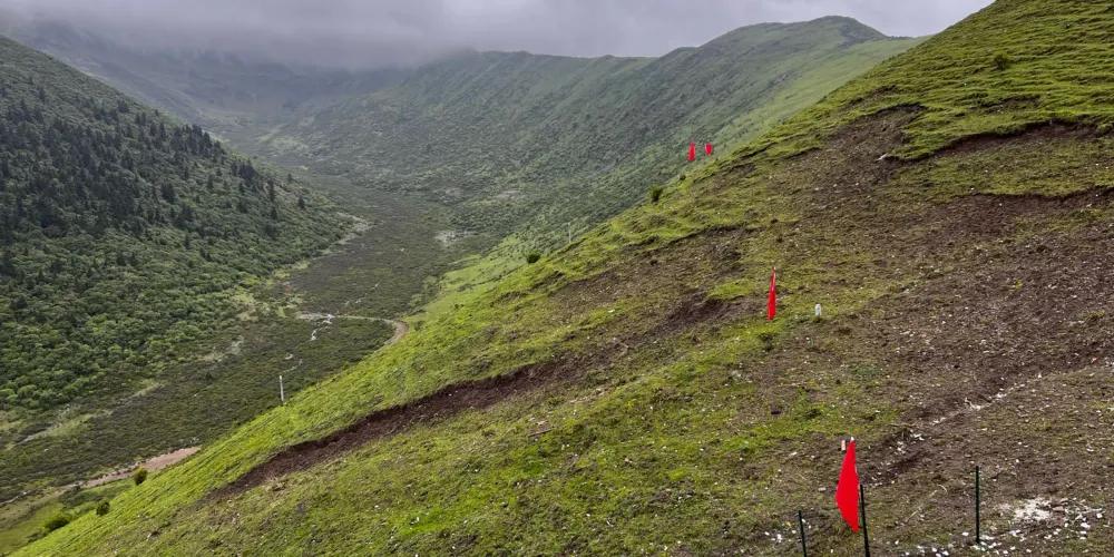 夢筆山距馬爾康縣城30公里,位於卓克基鄉南與小金縣交界處,呈東西走向,山勢平緩,較低山口海拔3900米,其高峯海拔4470米。夢筆山埡口是縣城通往小金縣的一條通道,也是1935年6月27日中國工農紅軍長征時翻越的大雪山。