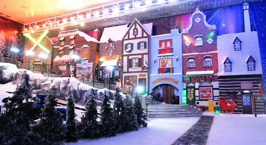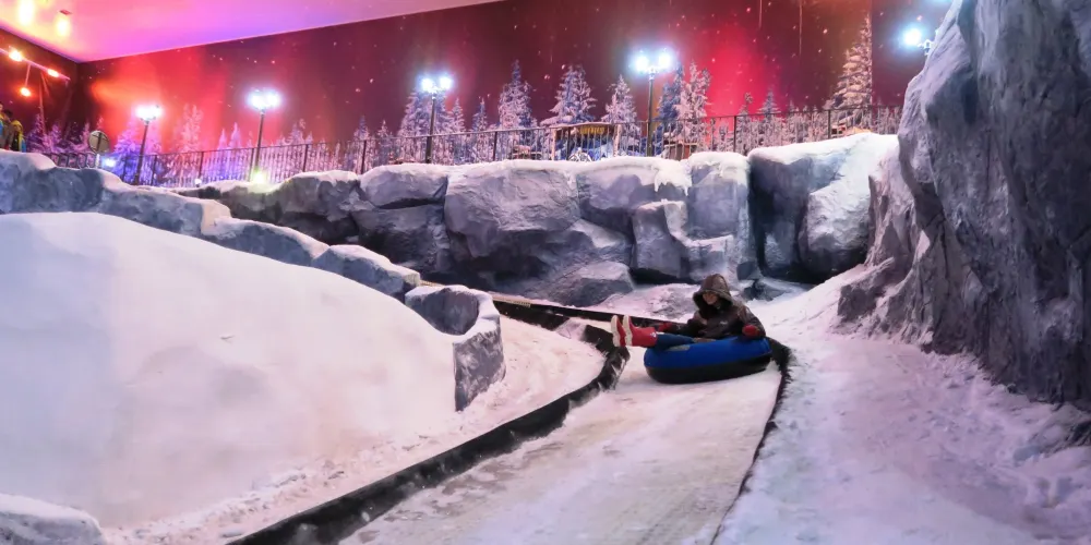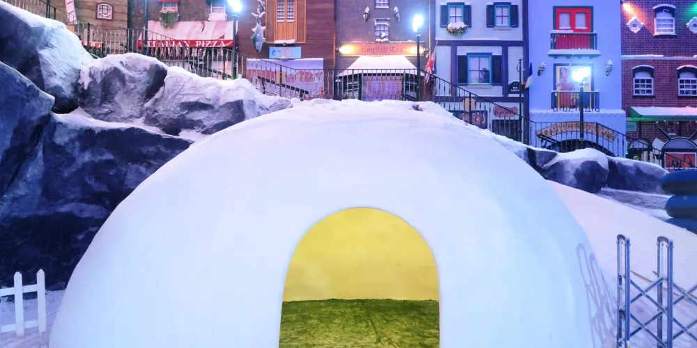 In snow-world, you can experience a sub-zero environment, complete with life-like snowfalls, changing day-to-night sceneries, warm igloo houses, and relics of ancient Roman castles