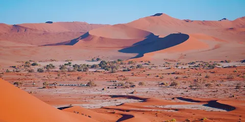 - 5分距離市中心268.4公里納米布-諾克盧福國家公園位於納米比亞西南部的大西洋沿岸,是非洲較大的國家公園之一,涵蓋了納米布沙漠和諾克盧福山脈等多樣化的地貌,旨在保護這一地區獨特的生態系統和豐富的生物多樣性。園區內有名的景點之一是索蘇斯弗雷紅色沙丘,這些沙丘的橙紅色調是由於沙粒中鐵的氧化所致,顏色的深淺也反映了沙丘的年齡。儘管環境極度乾旱,公園內仍棲息著多種適應性強的野生動物,如南非劍羚、跳羚、鬣狗、胡狼和各種爬行動物。納米布-諾克盧福國家公園不僅是自然愛好者的天堂,也是攝影師和地質學家的理想之地。其獨特的地形和生態系統為研究地球歷史和生物適應性提供了寶貴的資源,無論是追尋自然奇觀,還是渴望一場心靈的冒險,納米布 - 諾克盧福國家公園都能帶來獨特的旅行記憶。