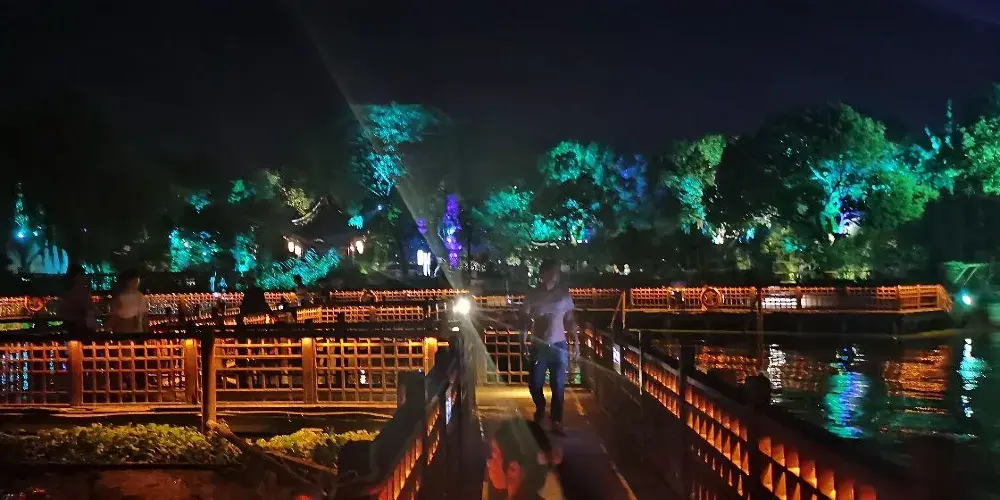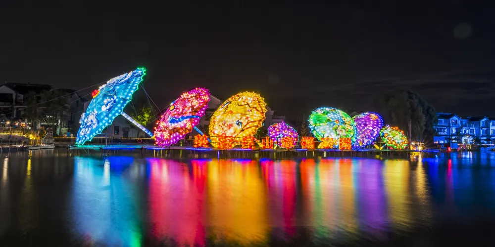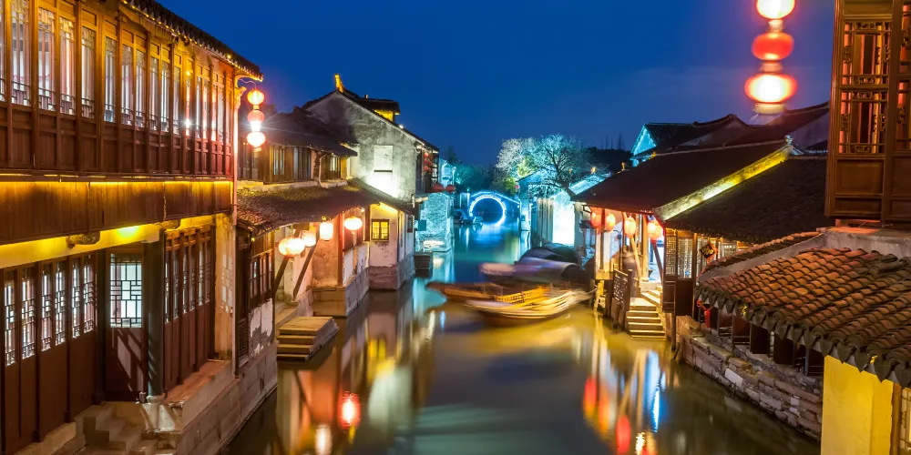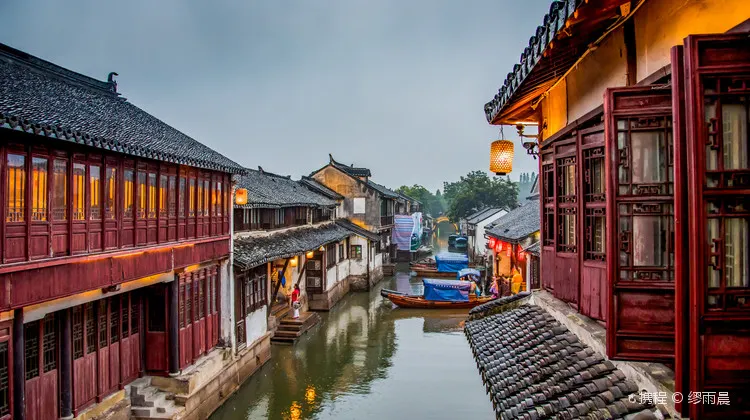 周莊是江南聞名於世的水鄉古鎮,鎮上水路縱橫,明清老建築依河而建,畫家陳逸飛筆下的雙橋刻畫出小橋流水人家的溫柔,古鎮南邊的南湖開闊美麗。夜晚周莊亮了燈又別有一番意境。