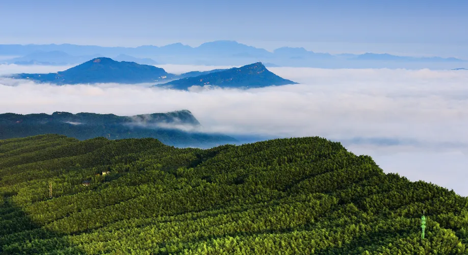 蜀南竹海位於宜賓長寧縣和江安縣的交界之處,空氣清新,景色也十分優美。景區內有長寧竹海博物館,裡面可以看到很多做工精美的竹製品。登上索道還可以俯瞰竹海全景。來到這裡,也不要忘記在附近的農家吃一頓全竹宴,可以吃到竹筍、竹蓀、竹蛋、竹肚等,味道獨特,也十分美味。