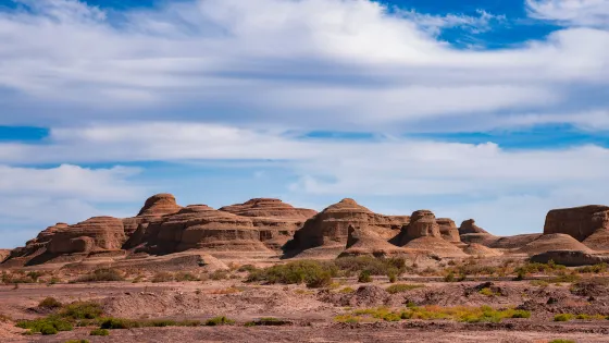 獅身人面像位於新疆維吾爾自治區的克拉瑪依市,是大自然經過漫長歲月的風雨侵蝕而形成的天然象形景觀。這個獨特的地質奇觀坐落在烏爾禾區的魔鬼城,以其栩栩如生的造型和壯麗的景觀吸引著許多遊客慕名前來。這裡不僅有令人驚嘆的自然雕塑,還有來自內蒙古阿拉善的憨態可掬的雙峰白駱駝,遊客可以騎著駱駝在「獅身人面」下漫步,彷彿置身於古埃及的神秘氛圍中。獅身人面像周圍的沙漠景觀和獨特的地質地形也為遊客提供了一個不錯的攝影背景,尤其是在日出或日落時分,光影效果更為迷人。獅身人面像所在的區域交通便利,遊客可以透過自駕或搭乘當地旅遊巴士到達。