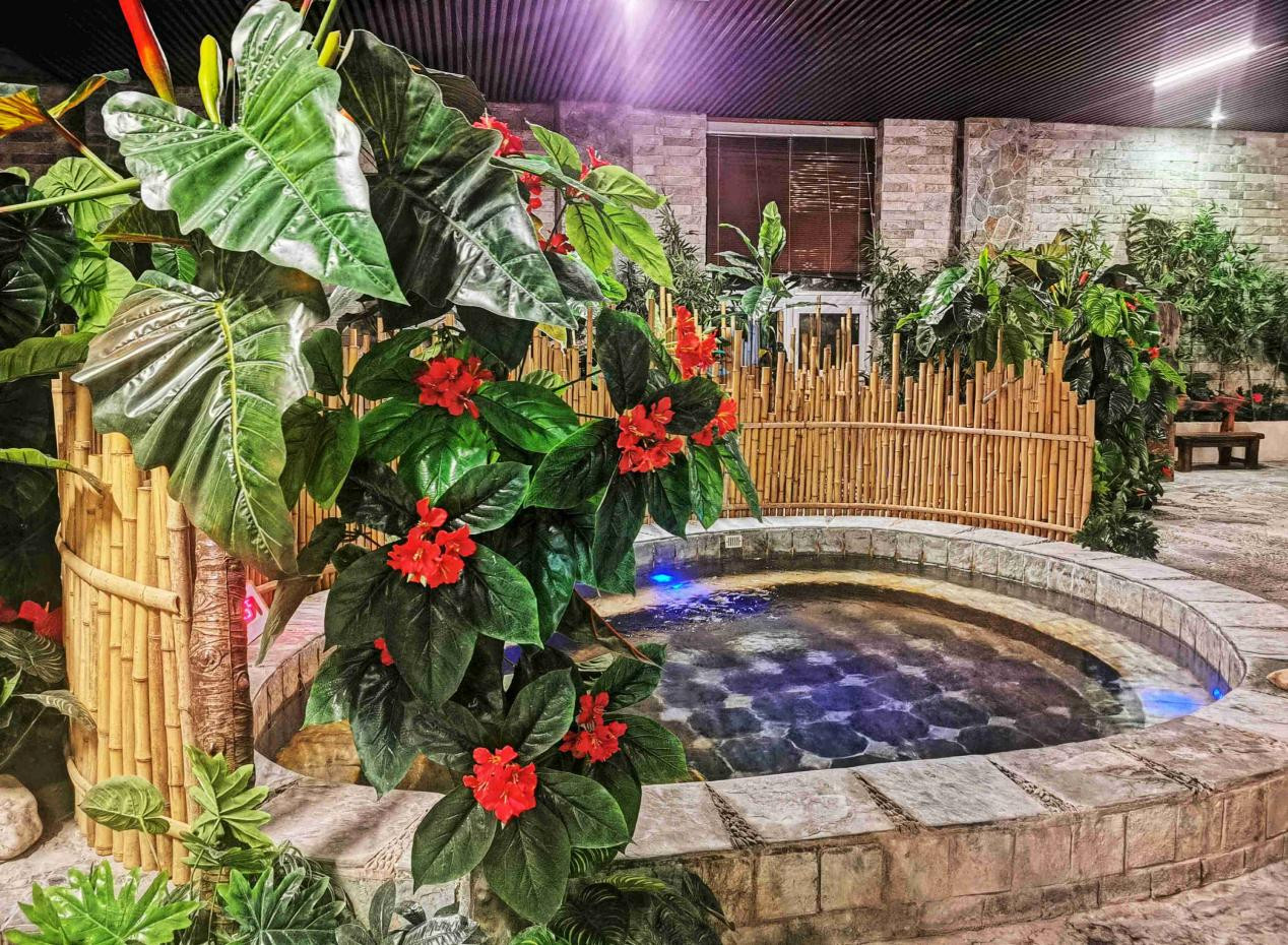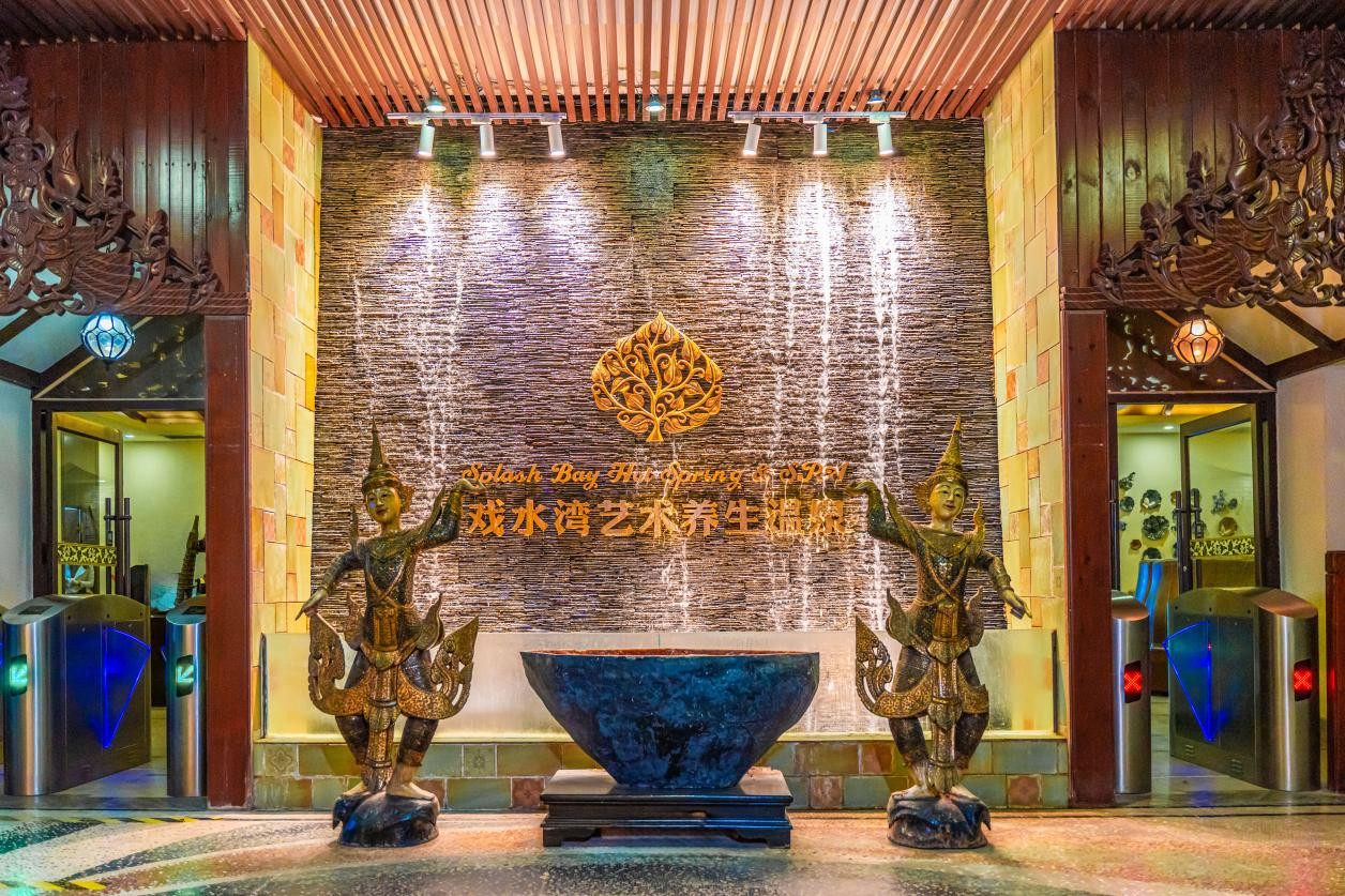 藝術養生溫泉採用泰國經典建築風格設計,呈現濃郁的異域風情。裝飾精緻典雅,佈局獨特,給賓客一種別樣的戲水體驗。溫泉水源自地下,在這裡泡溫泉,既能欣賞特色景觀,又能在一定程度上滋養身心。