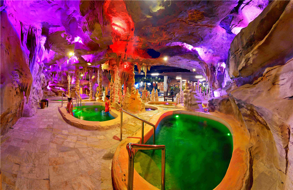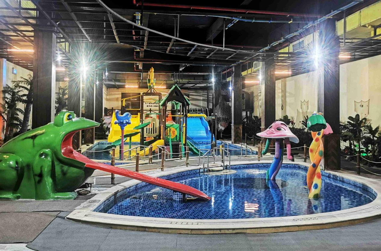 溫泉區內設有30多個主題溫泉池,可滿足不同人群的需求。鐘乳石溶洞區的燈光設計巧妙,營造出奇幻的氛圍;竹林區綠樹成蔭,環境靜謐清幽;兒童區水溫適宜,配備了一些有趣的水上設施,適合孩子們遊玩。