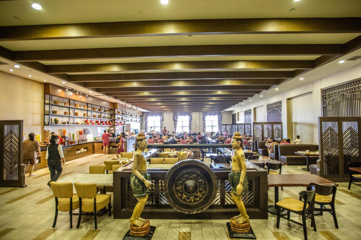 浸完溫泉後,遊客仲可以喺泰式裝修風格嘅自助餐廳享用美食。