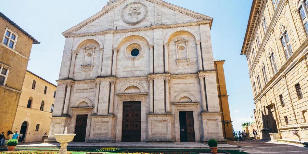 聖母昇天主教座堂位於皮恩扎市中心的主廣場庇護二世廣場(PiazzaPioII)上,這是一座文藝復興建築,建於1459-1462年,內飾為哥特式風格,有三個中殿。堂內裝飾着庇護二世委託的當時有名的藝術家的繪畫作品。