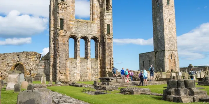 聖安德魯主教座堂是蘇格蘭現存很宏偉的中世紀建築之一,大教堂較早修建於1160年,直到1559年,這裡一直是人們朝聖的焦點。然而在宗教革新期間,它被洗劫一空,只剩下眼前的這些斷壁殘垣。從如今尚存的遺跡中,仍能感受到這座教堂當年宏偉的規模。
