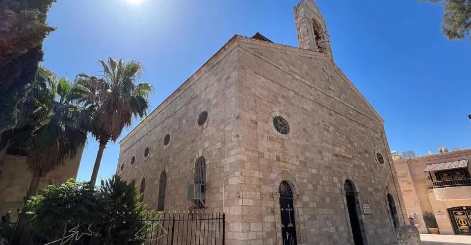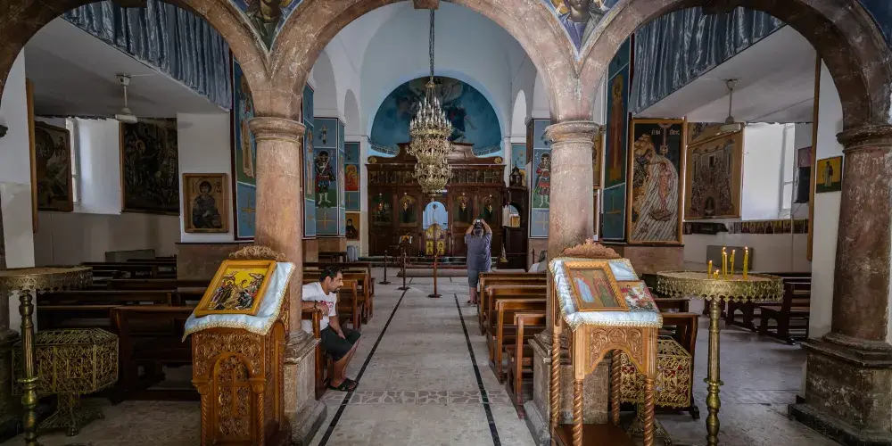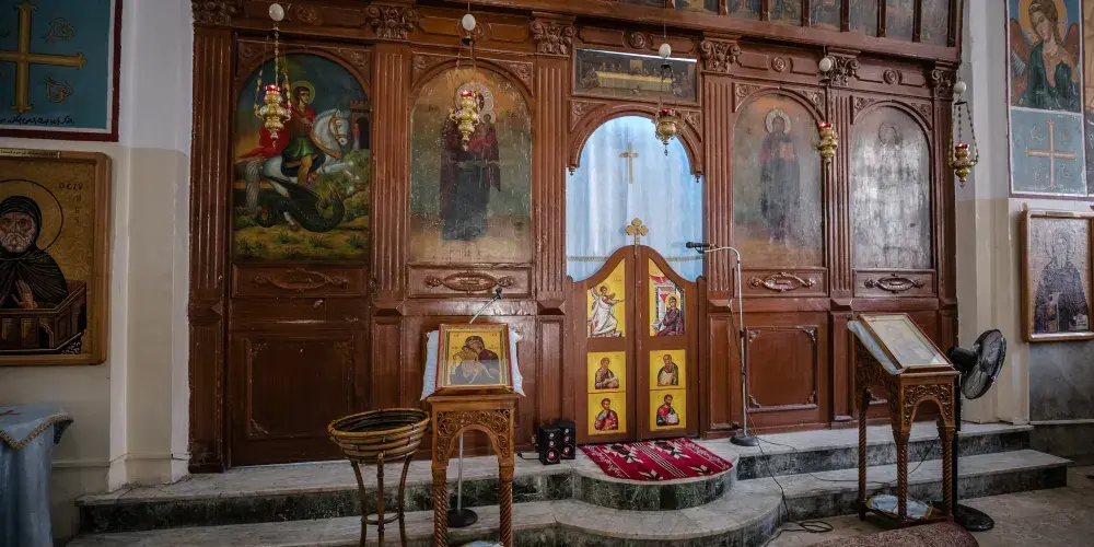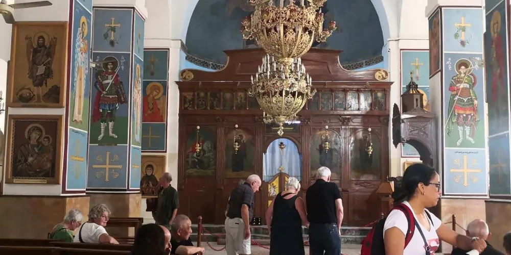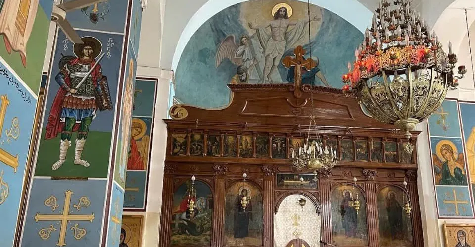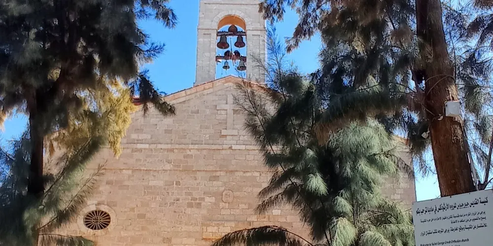 聖喬治東正教教堂位於馬德巴城內,始建於公元5世紀,1896年重建。教堂的地面上有一幅珍貴的馬賽克鑲嵌畫:現存世界上最古老的中東地圖。這幅地圖長25米,寬5米,是由200萬塊彩石拼成的。