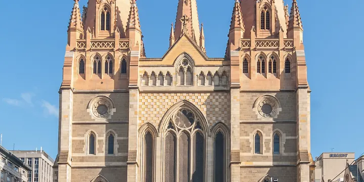 這座宏偉的教堂由英國建築師威廉巴特菲設計,建於1891年,是墨爾本較早的英國式教堂,大教堂由青石砌成,牆上有著精細的紋路。 1932年,教堂又加了3根尖塔,使它看起來更雄偉。在教堂外面的草坪上還有馬修·福林德(澳洲較早的拓荒者)的塑像,教堂內部彩色玻璃窗、釉燒地磚、木製座椅及拱頂牆裙的紅色,教堂內巨大的管風琴,光輝與色澤同教堂內的紅色裝修融為一體,教堂外豎立著幾位非常值得紀念的雕像,而且還有一個很漂亮的小花園。