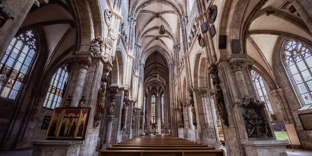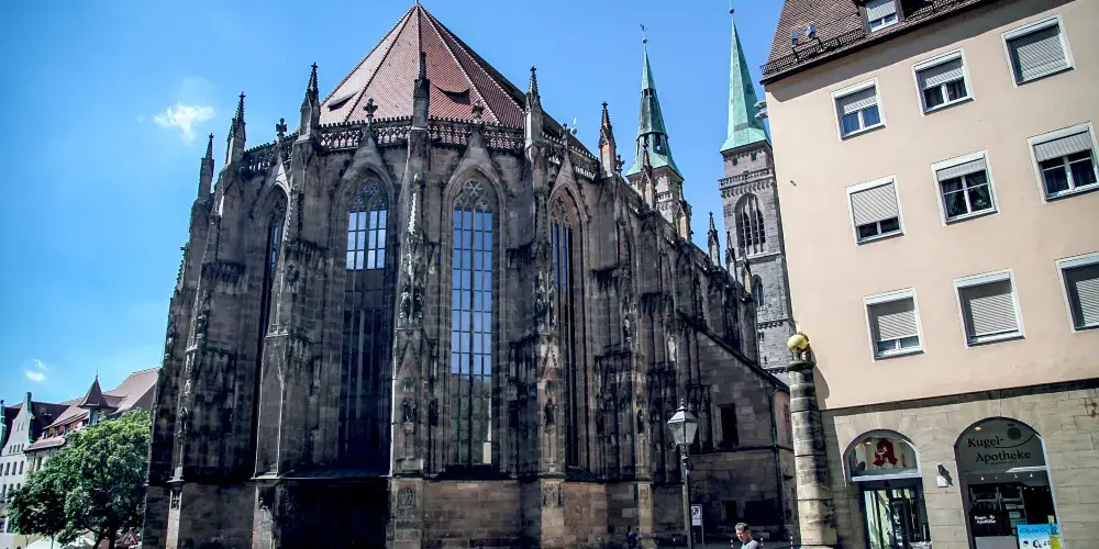 聖塞巴都堂是德國紐倫堡古老的中世紀教堂之一,始建於13世紀,起初為羅馬式風格,後在14世紀改建為哥德式,15世紀增建雙塔,17世紀內部裝飾改為巴洛克風格。教堂得名於8世紀的紐倫堡主保聖人——隱士和傳教士聖塞巴都,自宗教改革以來一直是路德會教堂。教堂坐落於丟勒廣場,正對市政廳,是紐倫堡三大教堂之一,比聖母堂和聖勞倫斯堂更為古老。二戰期間,教堂嚴重受損,但戰後修復,部分珍貴文物如聖塞巴都神殿和彩色玻璃窗得以保存。如今,聖塞巴都堂不僅是重要的宗教場所,也是紐倫堡的熱門旅遊景點,吸引遊客欣賞其混合建築風格和豐富歷史遺產。