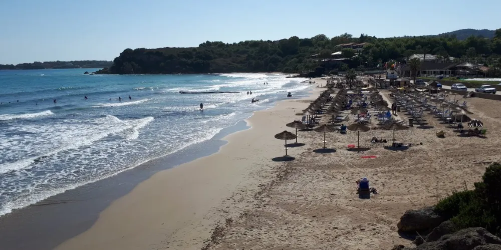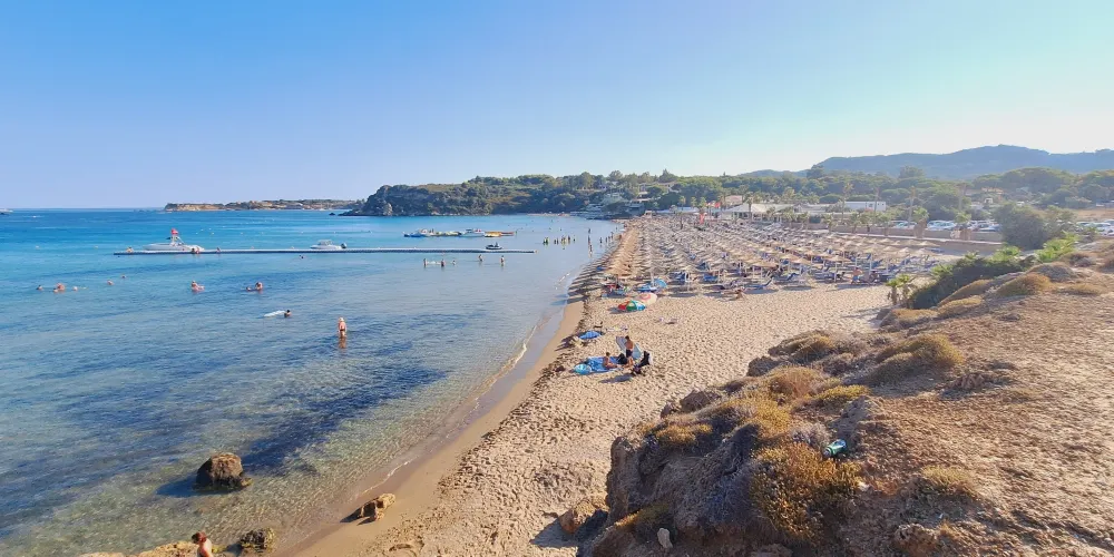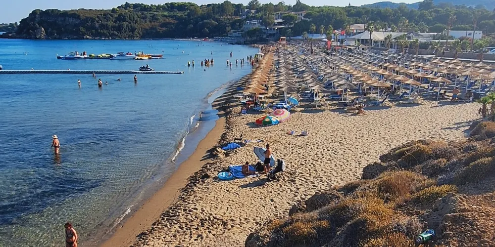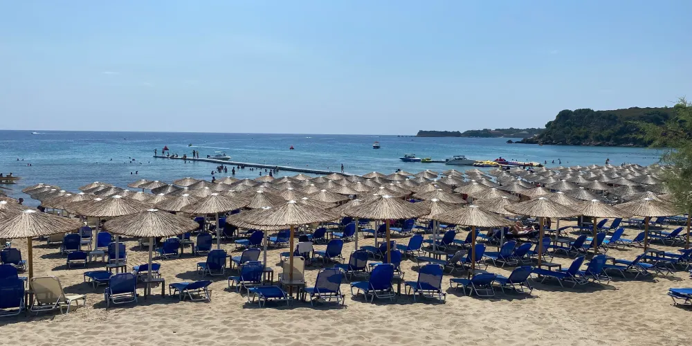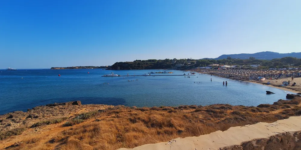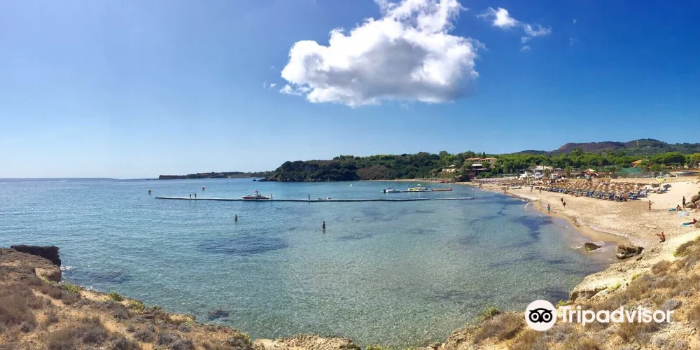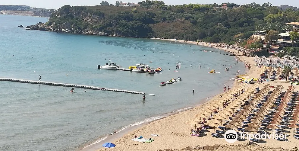 香蕉海灘位於紮金索斯島東南的瓦西利科斯半島(Vasilikos)東岸,細白的沙灘被兩邊的綠色植被和湛藍色海洋包圍,相映成趣。夏天旺季的時候,這裡四處都是曬日光浴的遊客,甚至有人在沙灘上打沙灘排球,是休閑度假的好去處。