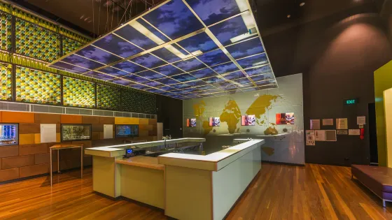 在這裡,你可以參觀自助式的、互動的“葡萄酒發現之旅”(Wine Discovery Journey)展覽,可以品嘗澳大利亞葡萄酒,可以近距離觀察釀酒工人勞動,還能像模像樣地嘗試鑒定酒的品質呢! 展廳裡陳列著修枝機、採摘機、除梗破碎機、控溫發酵罐、壓榨機,甚至連陳釀的橡木桶都有。大屏幕會迴圈播放從採摘到釀造完成的全過程。 看到美好的事物,當然會有想自己親手創造的衝動。然而釀酒不是一蹴而就的事情,但在這裡有機會類比一下。用觸摸屏來操縱一台小型電腦,通過產地選擇,採摘時機及方式、存放溫度、是否帶皮發酵、發酵溫度和時間控制、是否進行蘋果酸—乳酸發酵、罐儲還是桶儲、冷穩處理等若干方面來控制葡萄酒的質量,最後由電腦系統進行評定。全部合理就是金牌,小錯誤還能得到銀牌和銅牌,要是哪個重要步驟出了問題就只能是普通等級了。 這一系統提供了雷司令、霞多麗、赤霞珠和西拉茲四種原料的釀造過程,分別代表輕型酒體的葡萄酒、中型酒體的白葡萄酒、中型酒體的紅葡萄酒和重型酒體的葡萄酒的釀造過程。每一步都有小小的提示,幫助了解這一品種的釀造特點,仔細分辨,並不是看起來一樣的酒就是用同一種方法做出來的。細心學習那些小提示,就可以體會它們之間的微妙差別。 在最後的展廳裡陳列的是消費端的一些細節產品。藝術水晶杯、澳洲幾乎所有葡萄酒產品的商標、身型各異的瓶子、軟木塞、熱縮帽和起泡酒的金屬蓋,還有或優美或趣致的拔塞器和按品種分類的品酒杯。和葡萄酒時用上這些,你喝的不再是葡萄酒,而是藝術。