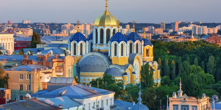 聖弗拉基米爾大教堂是為紀念王公弗拉基米爾將基輔羅斯基督教化900 週年而建,現在是烏克蘭東正教會基輔大主教領下大教堂。教堂建成於1896年,坐落在舍甫琴科大道西北。建築為俄羅斯拜占庭風格,鵝黃色的外牆在藍天的映襯下美麗無比,教堂內部飾有色彩絢麗的威尼斯鑲嵌圖案和壁畫。