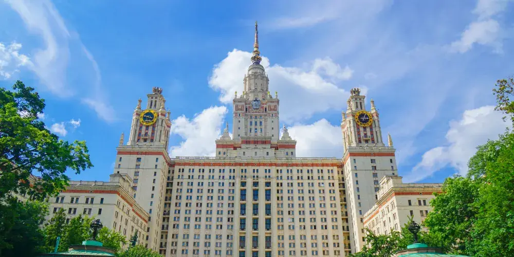 則評價莫斯科大學位於莫斯科河南岸,在這所綜合性的大學裡,其科學教育上獨特的學派早已名滿世界。因其典型的斯大林風格建築物而聞名於世。建築前有著名俄羅斯學者的塑像。而這些雕像其中就包括莫大的創始人羅蒙諾索夫的,佇立於主樓正前方與圖書館相呼應的位置。