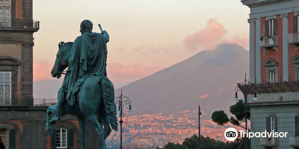 那不勒斯王宮位於宏偉的普雷比席特廣場對面,1600年由建築家多明尼克·馮塔納興建,其後經過多次改建,18世紀後成為波旁王朝的宮殿。皇宮正面的八幅巨牆上,分別擺放八尊昔日那不勒斯最重要國王的大理石雕像,洋溢著巴洛克式建築的神韻。