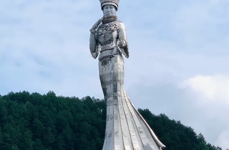 仰阿莎大雕像坐落於貴州市劍河縣仰阿莎湖畔,是全國較高的苗族美神雕像,雕像底座高22米,雕像身高66米,取自於當地苗族節日“二月二”和“六月六”,有着苗族傳統文化寓意。“仰阿莎”被苗族人民奉為美神,貴州清水江劍河縣一帶至今仍流傳着“仰阿莎”的傳説,她象徵著苗族人民對愛情的歌頌以及對生命的贊歎,是貴州版的"劉三姐",是苗族版的"阿詩瑪"。