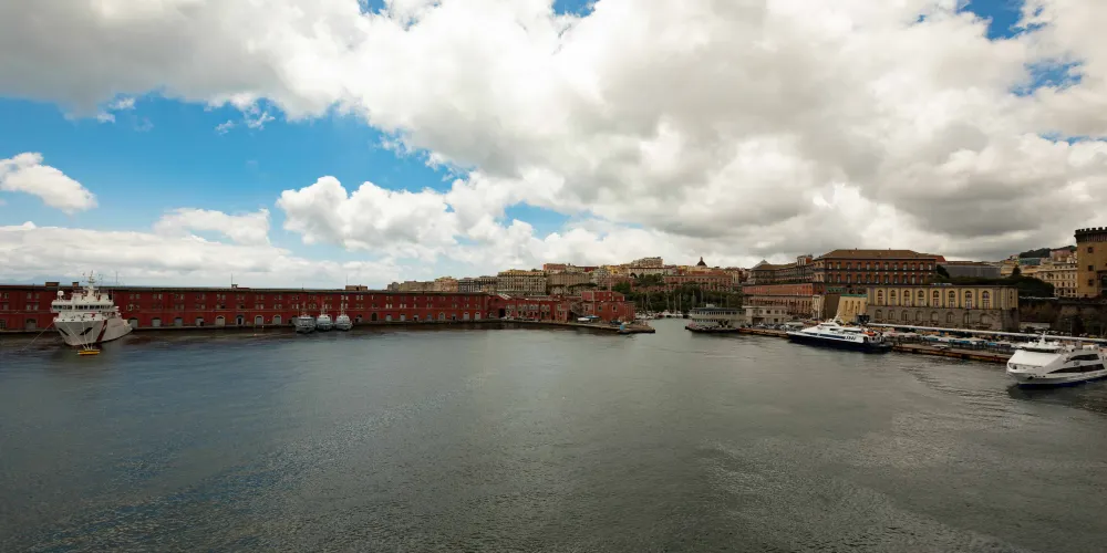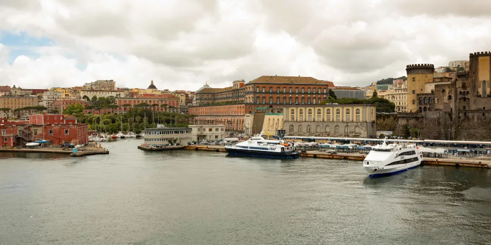 那不勒斯王宮位於宏偉的普雷比席特廣場對面,1600年由建築家多明尼克·馮塔納興建,其後經過多次改建,18世紀後成為波旁王朝的宮殿。皇宮正面的八幅巨牆上,分別擺放八尊昔日那不勒斯最重要國王的大理石雕像,洋溢著巴洛克式建築的神韻。