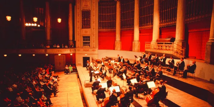 音樂廳是一座通體藍色外牆的建築,建於1926年,瑞典王家愛樂交響樂團經常在此地演出。音樂廳前有俄耳甫斯的雕像,該雕像是瑞典聞名的雕塑大家米勒斯的作品。