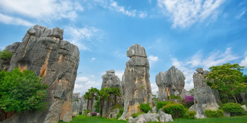 石林景區位於昆明石林縣,是昆明的重點景點之一。石林是典型的喀斯特特色地貌,石峰、石芽、落水洞、地下河遍布,峰林幻化成各種形態,劍狀、塔狀、蘑菇狀等等,千奇百怪美輪美奐。