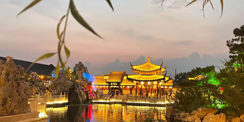 石頭記•千山大觀園佔地約20000平方米,建築面積12000平方米,主要由石頭記主題酒店、千山大觀園、石頭記傳統文化生活美學聚落羣等板塊組成,是一座再現中國古典文學名著《紅樓夢》中各經典建築、景觀、文化的中式古建羣。