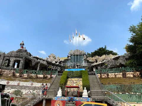 石頭廟較惹眼的就是它自身的建築,由數不清的石頭和貝殼堆積而成,寺廟以向信徒提供免費的素食自助餐而聞名,大殿內矗立着一個面紅耳赤的關帝,是英勇和忠誠的象徵。