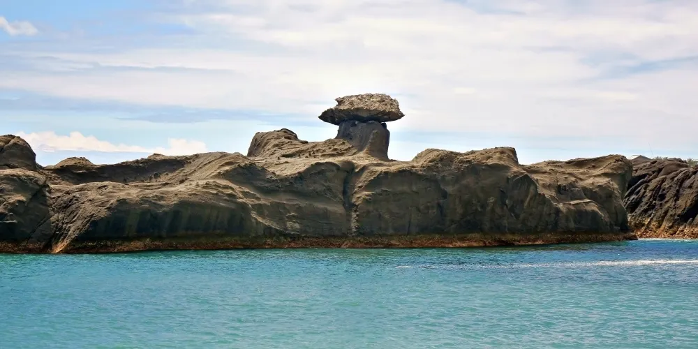 石雨傘為花東海岸公路獨特的奇巖景觀,是自海岸延伸入海的礁巖,因形以雨傘而得名。當大浪一湧而上,沖擊着礁石,在巖隙間會形成好幾道飛瀑怒潮的奇景,值得一觀。