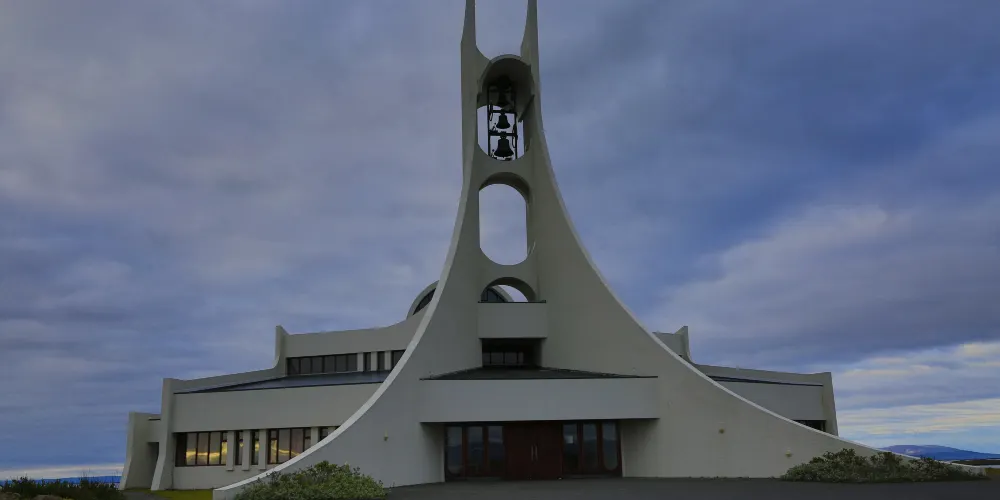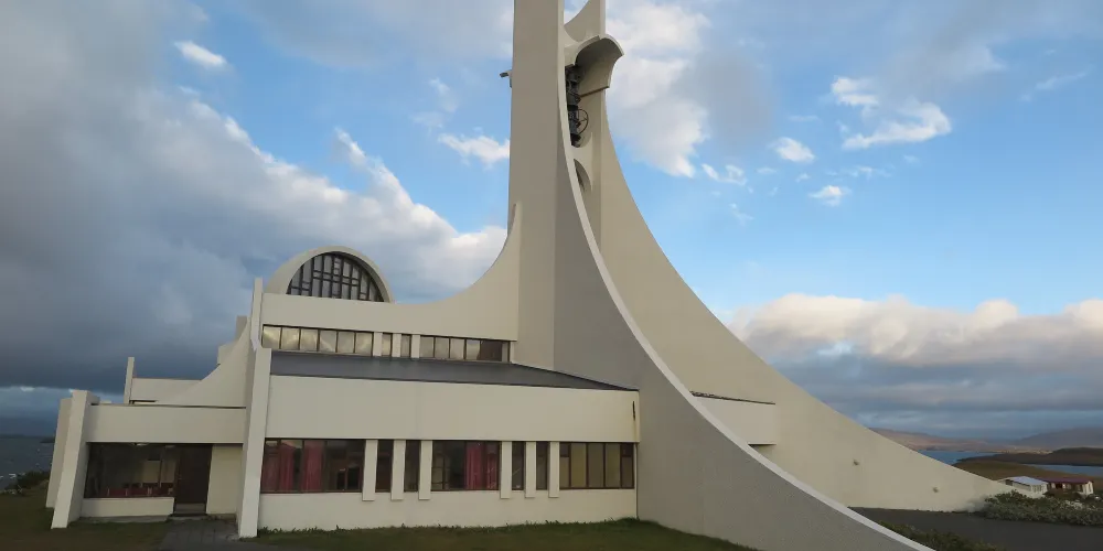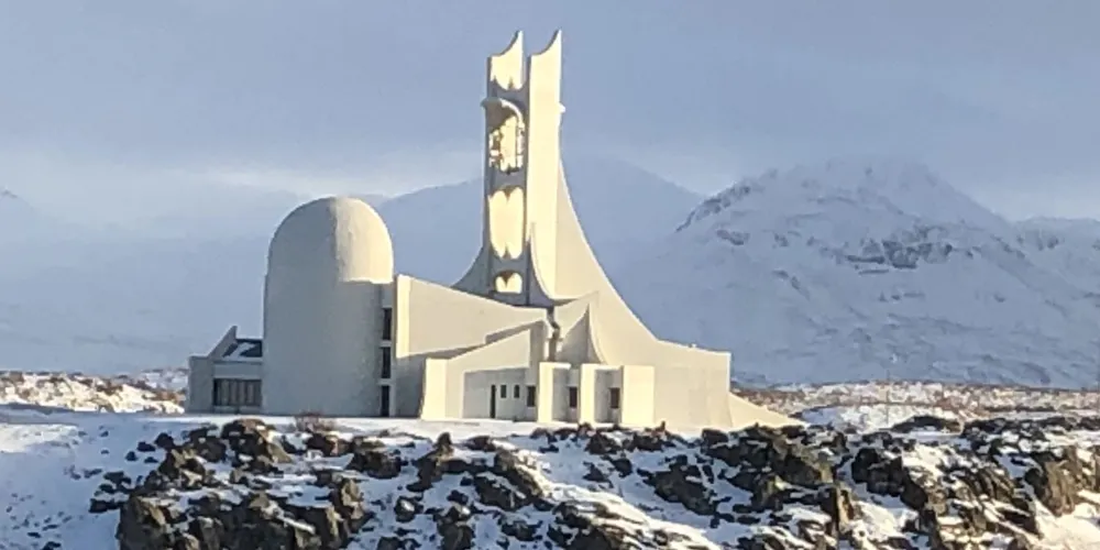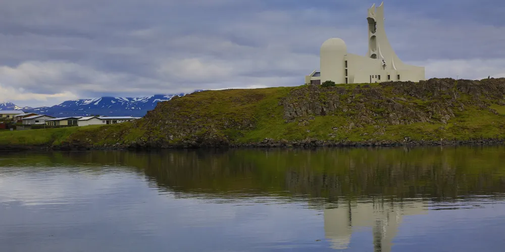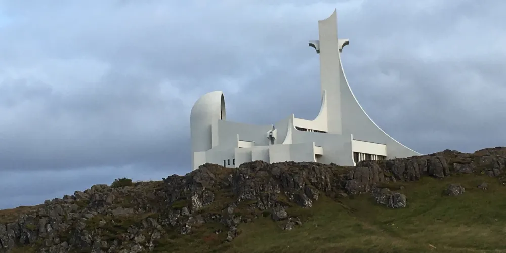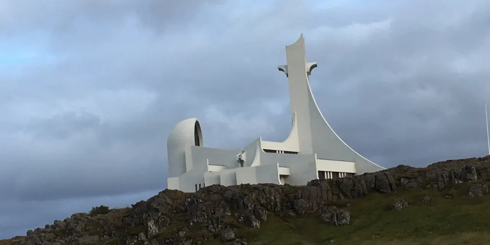 斯蒂基斯霍爾米大教堂是冰島西部斯奈山半島斯蒂基斯霍爾米鎮的一座標誌性建築,以其獨特的後現代主義設計風格而聞名。這座教堂建於1990年,由建築師Jón Haraldsson設計,靈感來自冰島的自然景觀,尤其是火山與玄武岩的幾何形態。教堂內部延續了北歐極簡主義風格,以明亮的白色為主調,搭配大面積的玻璃窗,讓自然光線充分灑入,營造出寧靜而神聖的氛圍。儘管規模不大,但它的設計極具藝術性,與冰島傳統的木造教堂形成鮮明對比。斯蒂基斯霍爾米大教堂不僅是當地居民的宗教活動中心,也因其獨特的建築美學成為遊客的打卡勝地。這座教堂以其現代設計與自然風光的理想融合,成為冰島西部不可錯過的文化地標之一。