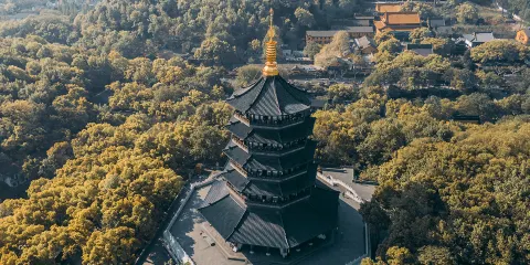 雷峯塔又名「雷峯塔」,位於西湖風景名勝區南岸夕照山的雷峰上。很多人的「雷峯塔情結」源於白娘子傳說,儘管舊塔在1924年就倒塌了,如今這座是在原塔基上新修的,裏面有電梯和空調,但並不妨礙你來此尋訪白娘子的蹤跡。