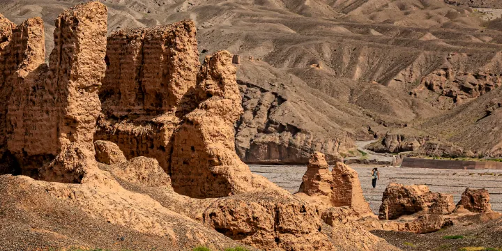 蘇巴什故城實際叫「蘇巴什佛寺」,又名「昭怙悝大寺」,波濤滾滾的庫車河穿城而過。據說,這條河就是《西遊記》裡「子母河」的下游。故城遺址始建於東漢(公元1世紀),隋唐(公元6至8世紀)盛極一時。