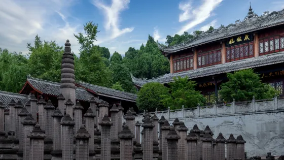 則評價三學寺位於縣城東6公里處的三學山上,相傳為“蜀中八仙”之一的李八百三次學道之地,隋唐時,山上建有延祥、廣濟、鴻教三寺,後改名為法海、普濟、廣濟寺,加上前庵開照寺總稱三學寺。明代初賜名為棲賢禪院,耗時五年在上寺後面修建有釋尊無量萬寶塔,明末寺院毀於戰火,康熙22年(公元1683年)重修,三學寺均為三重殿宇,規模雄偉。解放後,佛教停止活動,“文化大革命”中,廟宇被毀。1993年11月6日重新開放,廣禪任住持;1996年10月21日廣禪退休,崇定任住持,全寺共有僧人13人。經過10多年的艱苦努力,法海寺、開照寺已成規模。法海寺恢復了釋尊無量寶塔(八萬四千塔),新建了天王殿、觀音殿等,開照寺恢復了排坊、三門殿、金剛殿、天王殿、大雄寶殿、觀音殿(殿內塑有五百巴壁漂海羅漢)等,兩寺的建築風格古樸、莊嚴、宏偉、壯觀,廣濟寺恢復中,普濟寺待恢復。