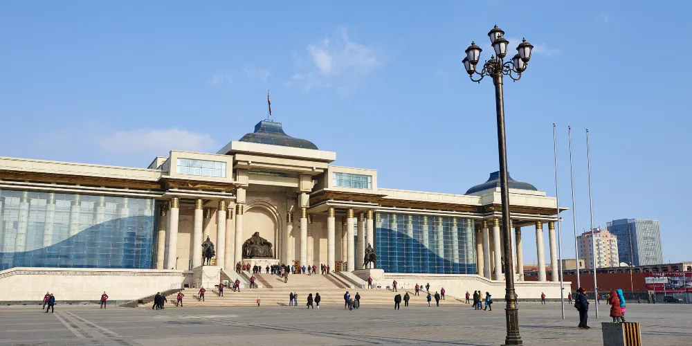 成吉思汗廣場原名蘇赫巴托廣場,2013年7月正式更名。成吉思汗廣場位於烏蘭巴托市中心,北面國家宮是蒙古國總統、政府、議會所在地,樹立有雄偉的成吉思汗坐像。成吉思汗廣場中心樹立有蒙古民族獨立領袖蘇赫巴托騎在馬背上的雕像。