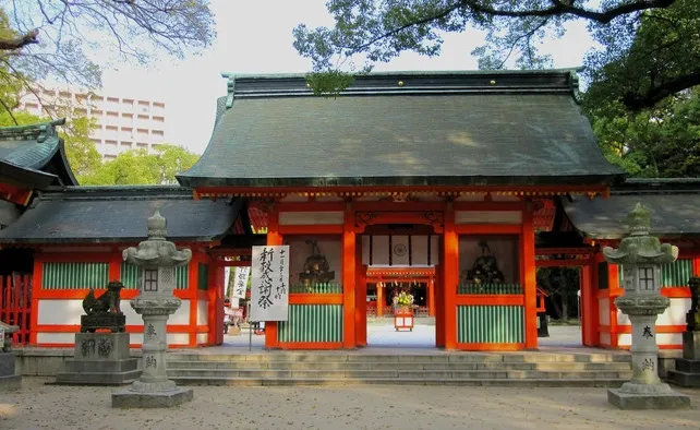 現在的本殿是在江戶時代前期由黑田長政興建,建築模式為古代日本獨特的“住吉造”,獲指定為日本重要文化財產。另外,神社境內出土的彌生時代的銅戈和銅矛等則是福岡縣指定有形文化財產。