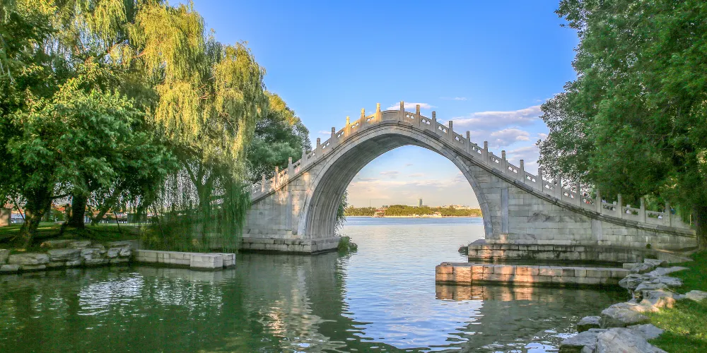 則評價十七孔橋橫跨在南湖橋和東岸之間,是仿造有名的盧溝橋而建。十七孔橋由17個孔組成,每個橋欄杆上都雕刻有形態各異、造型精美的石獅子,大大小小共幾百個,數目據說比盧溝橋的還多。日出日落時,是攝影愛好者的黃金拍攝時間。