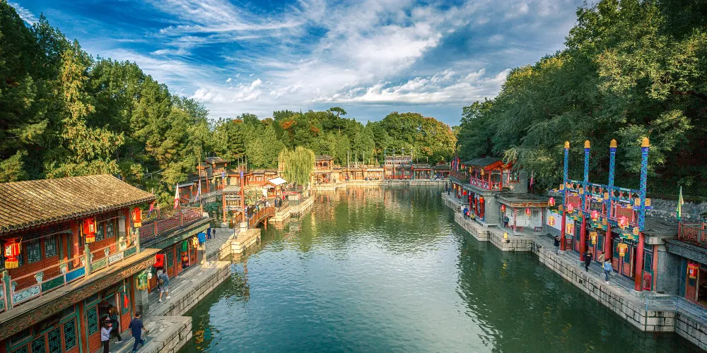 頤和園原是清朝帝王的行宮和花園,又稱清漪園,以昆明湖、萬壽山為基址,按照江南園林的設計手法建造,是規模龐大,保存完整的皇家園林,景色優美,還有很多珍貴的文物,被譽為“皇家園林博物館”。頤和園可分3個區域:以仁壽殿為中心的政治活動區;以玉瀾堂、樂壽堂為主體的帝后生活區;以長廊沿線、後山、西區為主的苑園遊覽區。