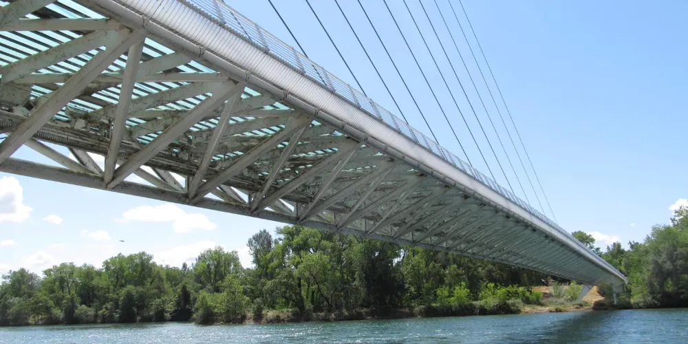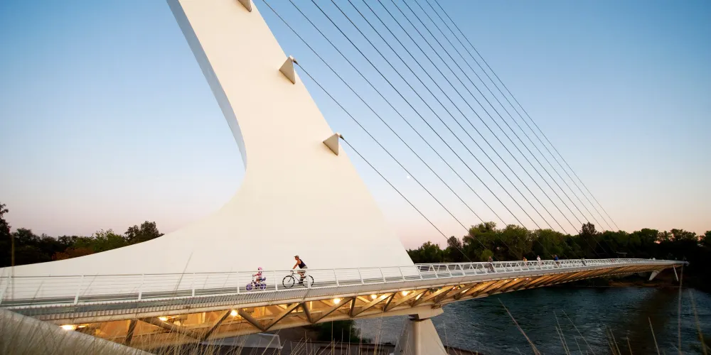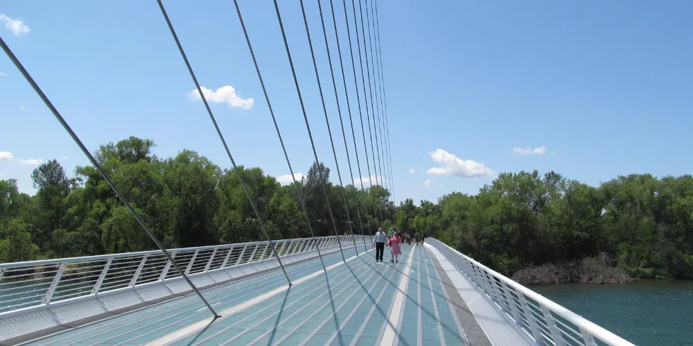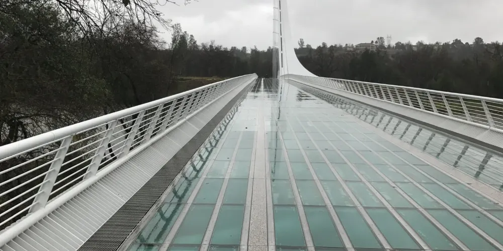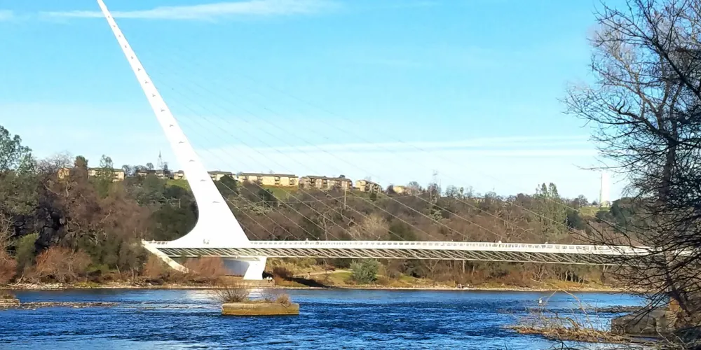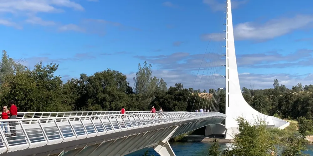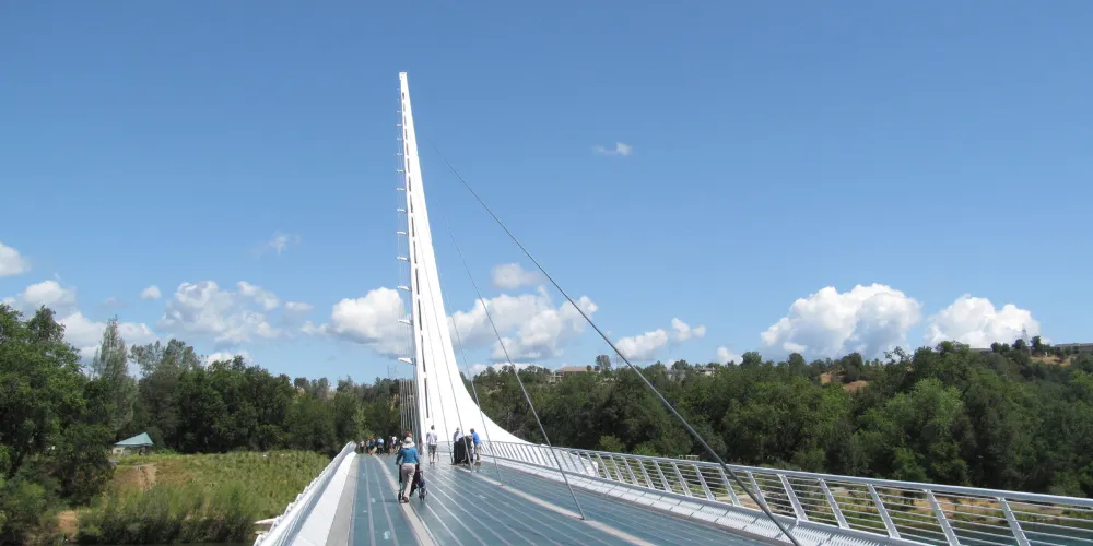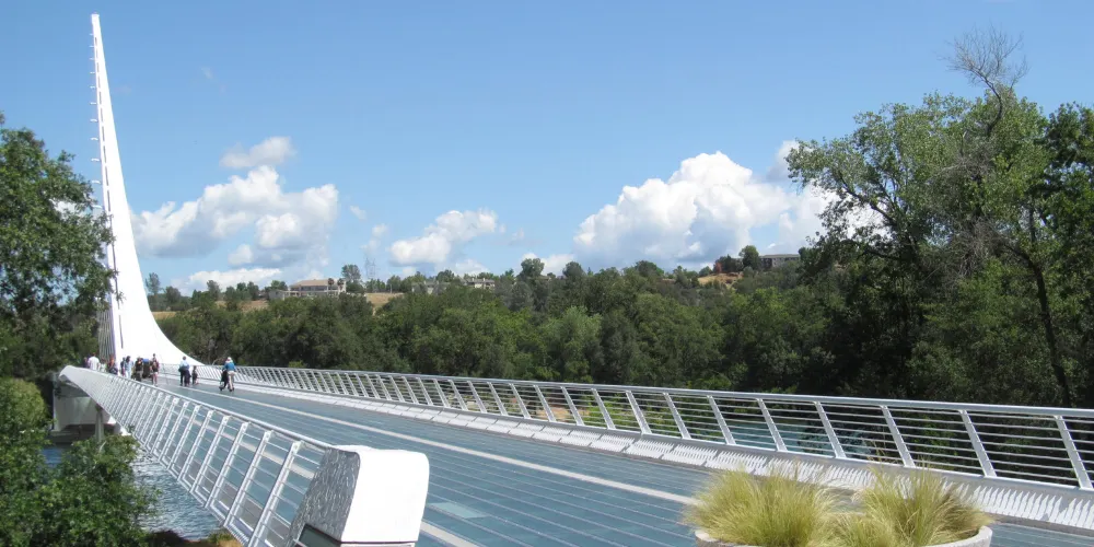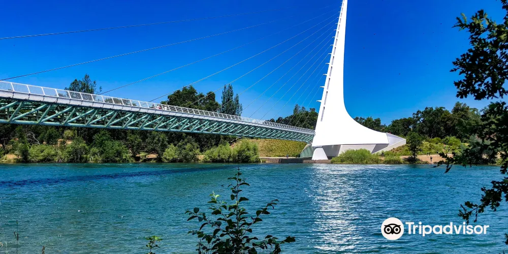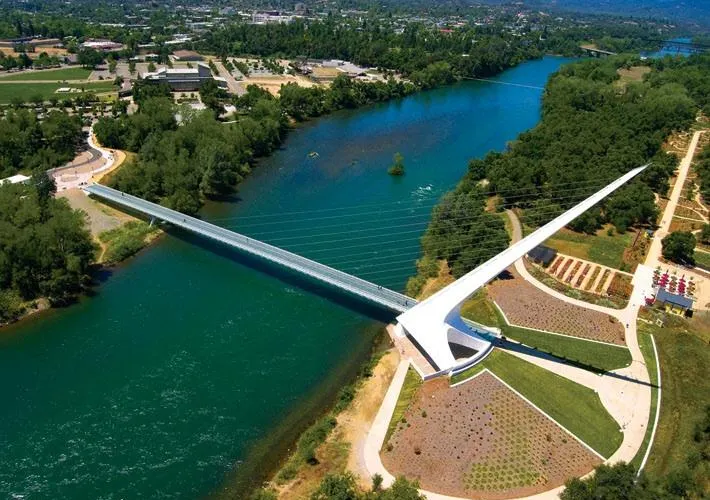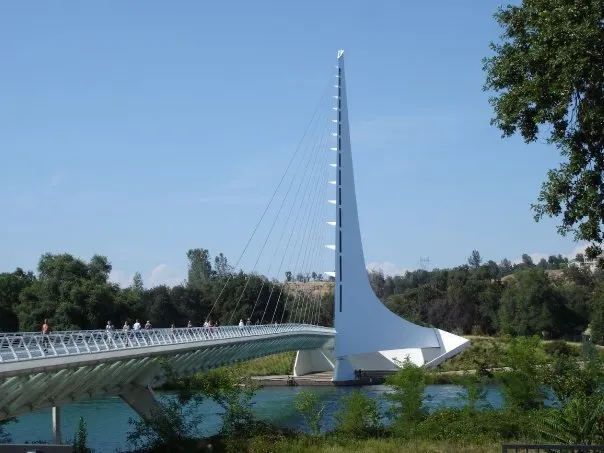日晷橋是Redding的重要地標,不是很大,但很有氣勢,看起來像一架靜置的白色豎琴,與周邊河流的景色交融在一起,構成一幅優美的畫面。