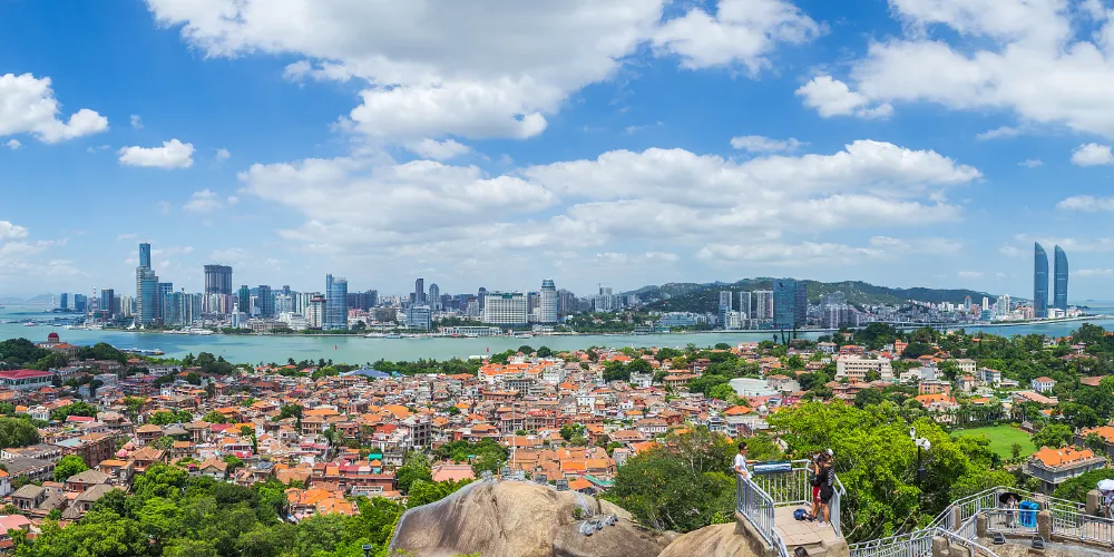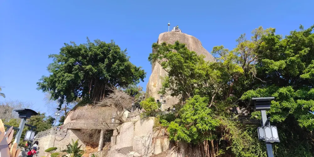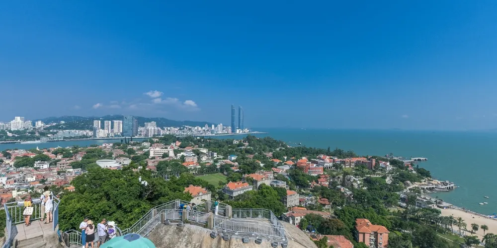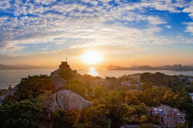 日光岩是由兩塊巨石一豎一橫相倚而立形成的,它是鼓浪嶼的高峰,也是鼓浪嶼極佳觀景點,可以從上而下俯視鼓浪嶼全島及廈門市區景象。放眼四顧,周圍景色優美,若是傍晚時分來此,不僅遊客較少,而且還能欣賞曼妙的日落,別有一番風景。