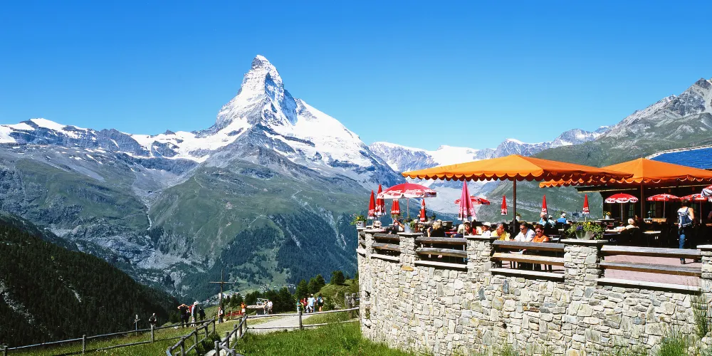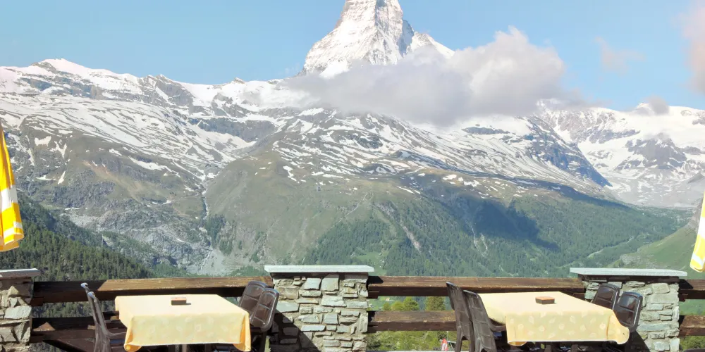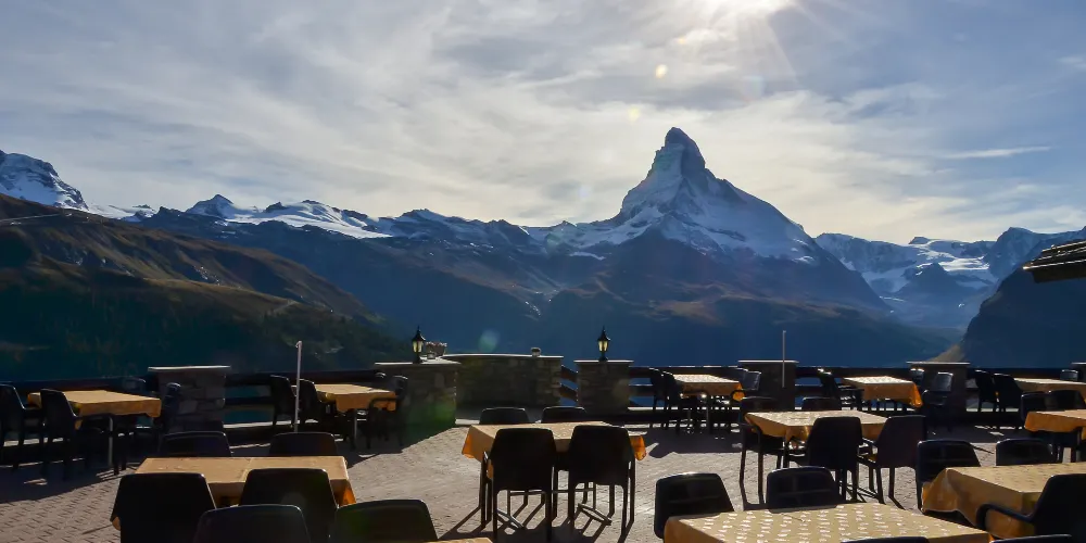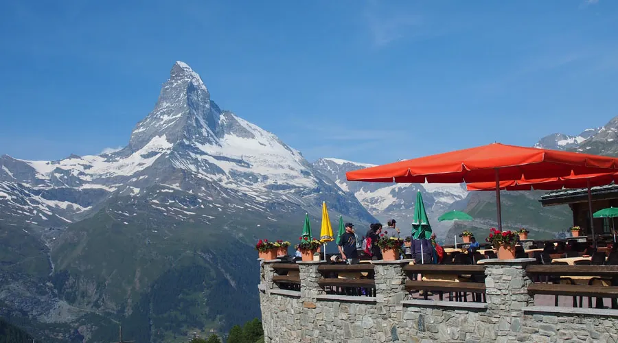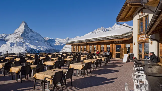 洛特峰海拔3103米,是欣賞馬特宏峰最快速易達的觀景地點。有人說從這裡看到的馬特宏峰是最美的角度,還能看到38座海拔超過4000米的連綿群山。漫步賞景之外,峰頂還有一間餐廳,可以在露台上愜意地欣賞美景。