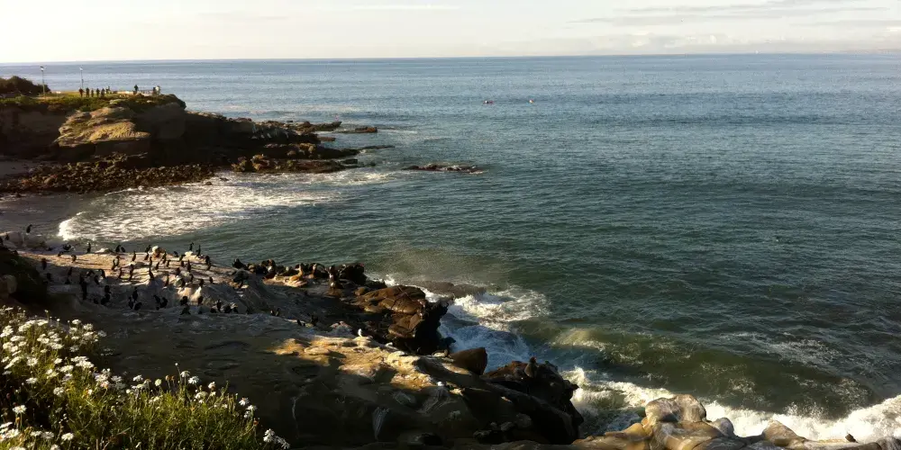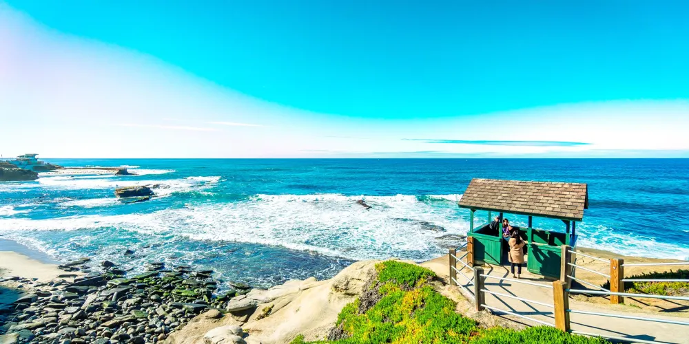 La Jolla Cove位於聖地亞哥北邊,那裡有清新的空氣,充沛的陽光,湛藍的海水,浪漫的沙灘,成群的海鳥、海豹和海獅,是人們休閒度假的好去處。整個海灘有很多項目,且各有所長,潛泳,划艇,滑浪,垂釣,滑翔,所有海邊的活動在海灘上都有。