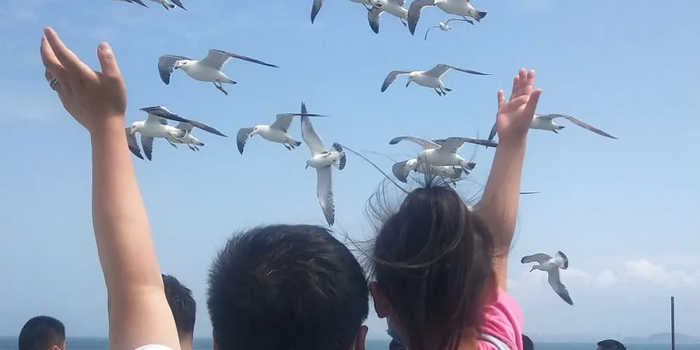 來長島遊玩的遊客一定要先從蓬萊碼頭坐船上島,雖然說一天也可以玩遍島上主要景點,但是想要真正體驗長島的風情還是建議在島上住上一晚。可以選擇住在南長山島或北長山島,兩島距離相隔不遠,遊玩島上景點較為方便。遊覽指南當天上島可先遊覽南島烽山林海景點,烽山作為候鳥遷飛路線的「黃金驛站」,林海蒼翠、花果豐茂,每年吸引成百上千的珍稀候鳥在此停歇補給,是鳥類愛好者的天堂。烽山的雄鷹觀景台是觀鳥的寶藏地點,遊客可以在此俯瞰整個海島的全景。林海因山海相依為名,負氧離子充沛,盡南端是著名的黃渤海交匯處-長山尾,涇渭分明,海浪相擊氣勢磅礴,遊客可在此體驗「一腳踏兩海」的豪邁。
