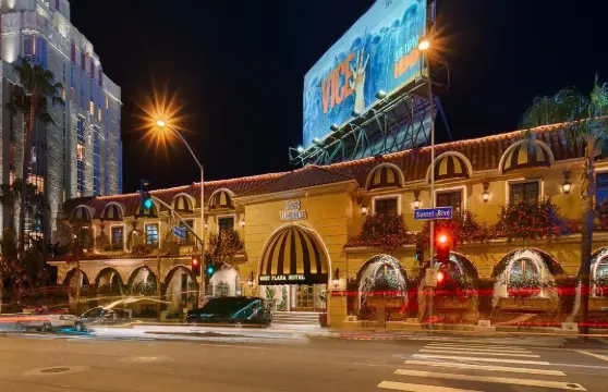 日落大道從洛杉磯市中心一直延伸到太平洋海岸公路,沿途有好萊塢、加州大學洛杉磯分校、比佛利山等人氣景點。其中日落地帶是洛杉磯夜生活的中心地帶,也是好萊塢名流文化的標誌符號。日落大道兩旁種滿了高大的棕櫚樹,街上廣告牌林立,這個場景出現在眾多電影和電視劇中。日落時分可以領略大道真正的美,夕陽西下,金色的陽光把道路照射的如夢如幻,車燈交錯,將一切染成了橘色,朦朧而迷幻。一直漫步至海灘,景色更為迷人。