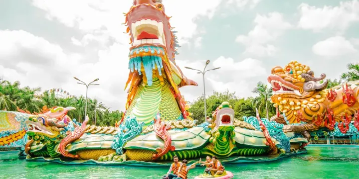 越南胡志明市的Suoi Tien主題樂園是一座獨特的佛教主題樂園,總面積105公頃。園區內設施齊全,包括迷你動物園、鱷魚池、電影院等。還設有人工海水池、人造海灘等水上娛樂項目。它的特別之處在於佛教文化與中國神話的融合,為遊客提供獨特的體驗。
