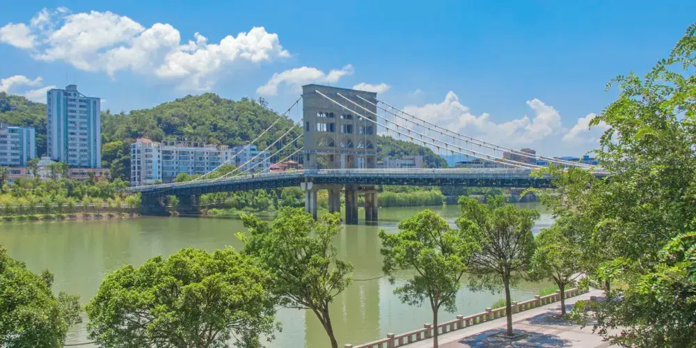 極具現代氣息的懸索橋宛如長虹卧波,威然聳立,壯觀不已。