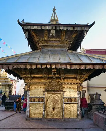 遊覽杜巴廣場通常從南邊的獨木廟開始,這是整個加德滿都谷地較古老的建築,甚至連加德滿都的名字也源自於此。這座三重屋簷的寺廟是用一整棵婆羅雙樹取材建造而成的,在其中間的木質圍欄裡供奉著喬羅迦陀神像。每天清晨這裡會顯得熱鬧非凡,各種蔬菜攤販開始營業,熏魚、香蕉葉和金盞花等擺滿了周圍的走廊。