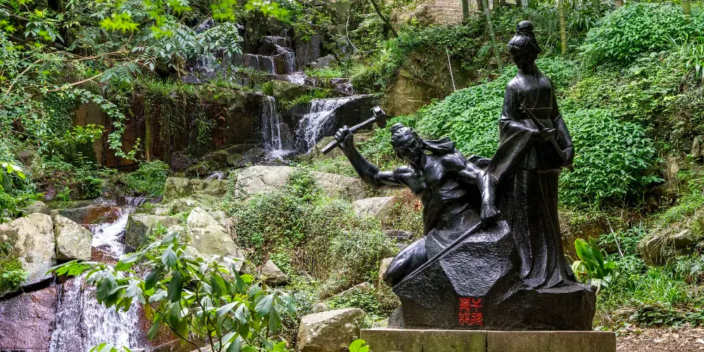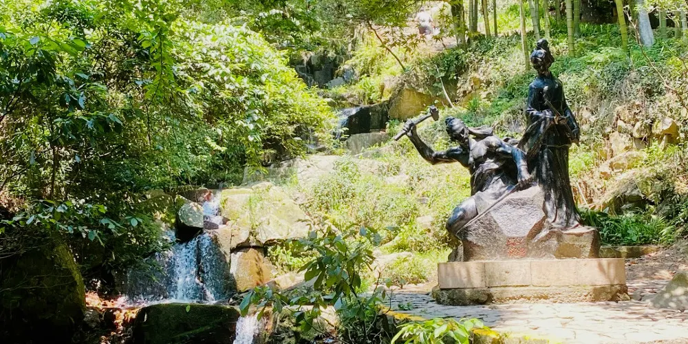 劍池是莫干山上人氣旺的景點之一,這裡景色不錯,除了竹林和飛瀑景觀,相傳,莫邪、干將在此鑄雌雄寶劍,磨以山之石,淬以池之水,則銛利倍常此處景點頗多,主要有四疊飛瀑,干將、莫邪雕塑,磨劍石、試劍石、摩崖石刻等。