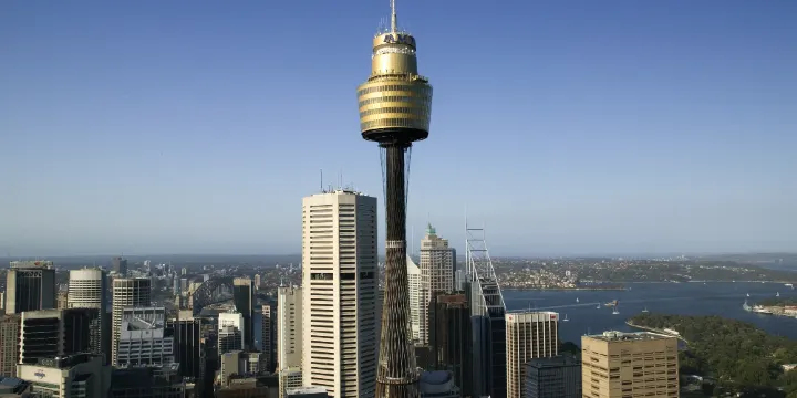悉尼塔建成於1981年,和悉尼歌劇院、悉尼海港大橋並稱為悉尼三大地標性建築。悉尼塔樓高300米,由56根每根重達7噸的巨纜支撐,展望台離地高度為250米,360度透明觀景台使所有景觀一覽無遺。藉助高倍望遠鏡,可以把周圍70公里內的景物盡收眼底。在位於悉尼塔頂端,你還可以在距離地面260米的玻璃底觀景平台行走,非常刺激。